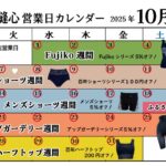 2025年10月1日 / 最終更新日時 : 2025年10月17日 小林 雄一 縫心2025年(令和7年)10月営業日カレンダー 下着工場直売店 縫心 は土曜日も営業しております また、栃木市キャッシュ決済ポイント還元キャンペーンの対象店です さらに、都賀商工会「ドッカ~ンと100万円 5人に1人が当たる!」普段のお買い物で商品券が当たるチャンスの […]