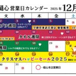 2025年11月29日 / 最終更新日時 : 2025年12月3日 小林 雄一 縫心2025年(令和7年)12月営業日カレンダー 下着工場直売店 縫心 の12月はクリスマスハッピーセール 特別な営業日となります(カレンダーをご参照ください) クリスマスプレゼントに、新年の新たな心持ちの特別なアイテムとして、小林縫製工業の心のこもった 縫心のオリジナ […]