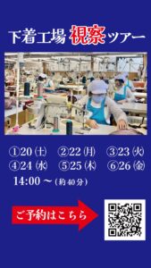縫心クリスマスハッピーセール2025特別企画として人気の下着工場視察ツアーも開催。(事前予約)